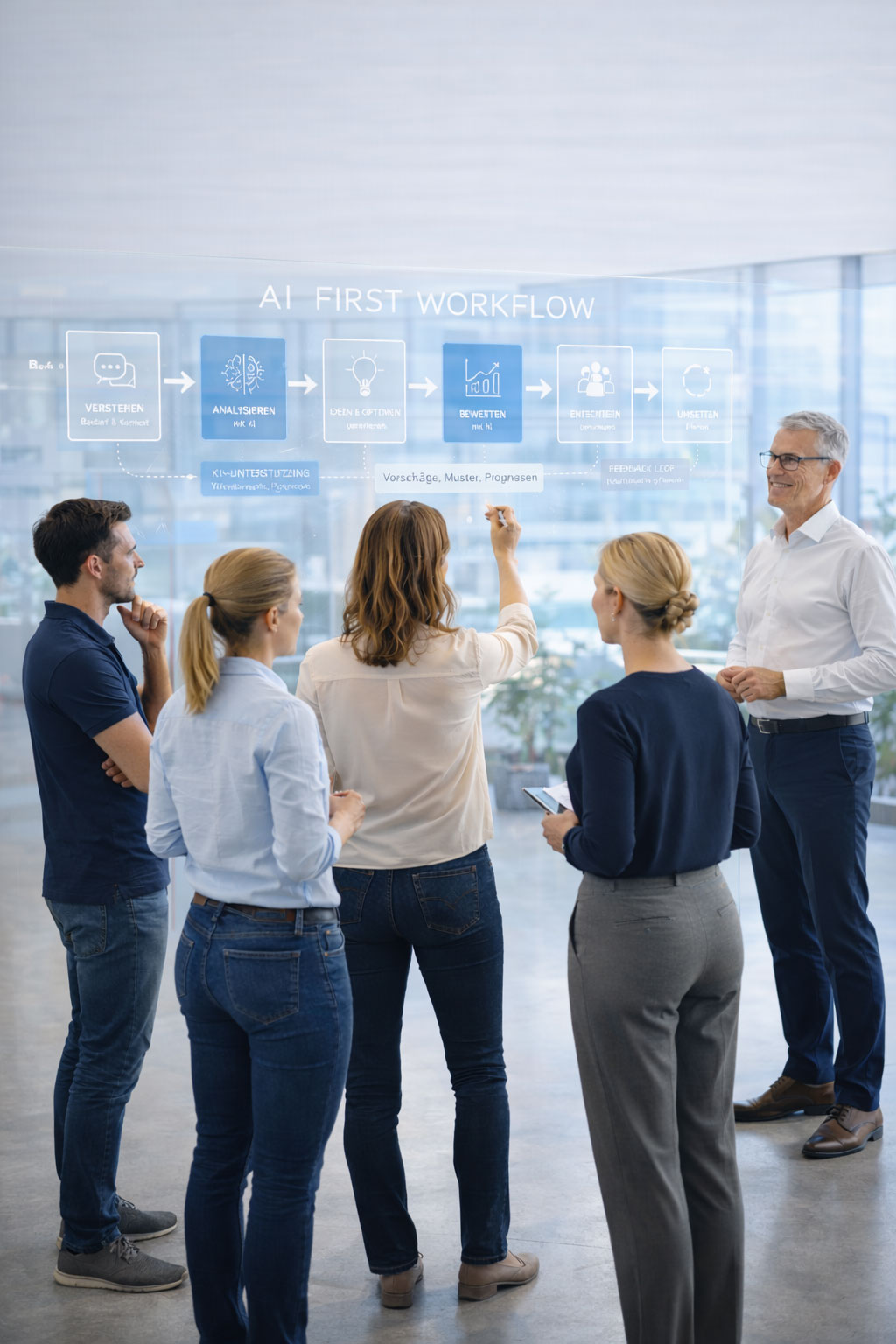 KI setzen wir dort ein, wo sie wirklich Arbeit abnimmt (z. B. Protokolle, Statusverdichtung, Frühwarnsignale) – eingebettet in Routinen und mit klaren Leitplanken. Verantwortung bleibt beim Management.