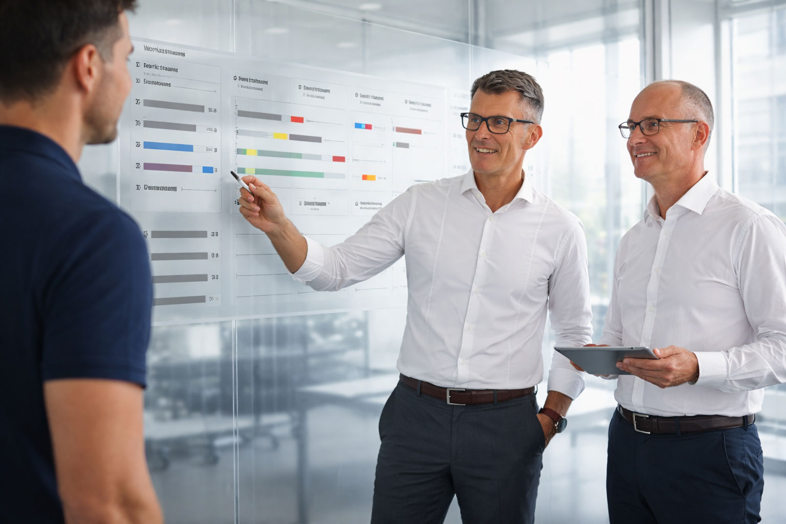 Wir arbeiten entscheidungs- und umsetzungsorientiert: wenige Prioritäten, klare Verantwortlichkeiten, nächste Schritte und ein Review-Rhythmus. Unsere Deliverables müssen im Alltag nutzbar sein (Roadmap, Maßnahmenplan, Governance). Wenn etwas keine Entscheidung oder Umsetzung auslöst, lassen wir es weg.